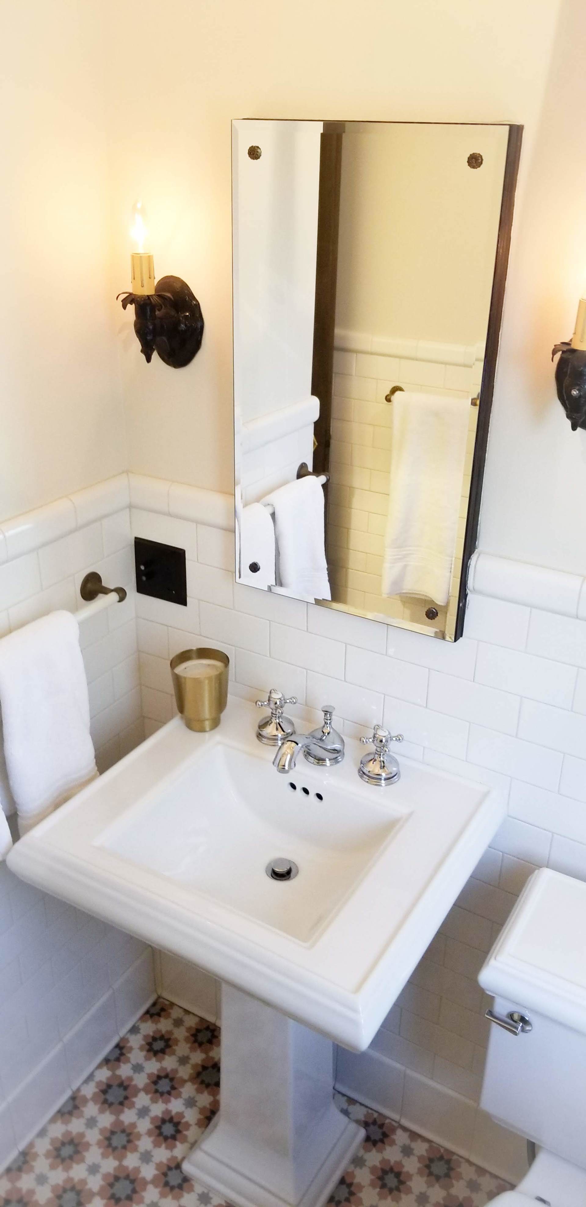 1920's inspired bath complete with Moroccan touches & live brass finishes
